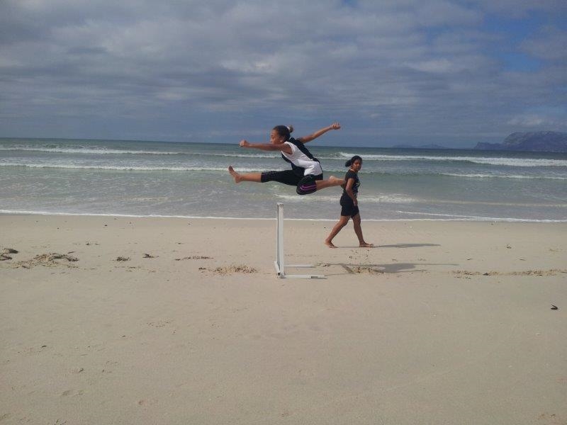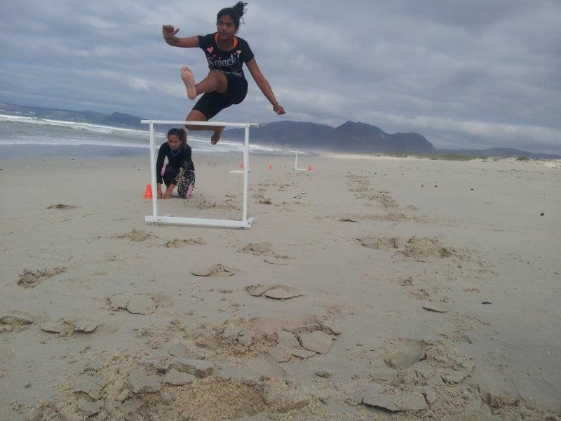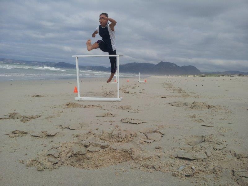 Another outing to the beach with some home made hurdles to work on technique.